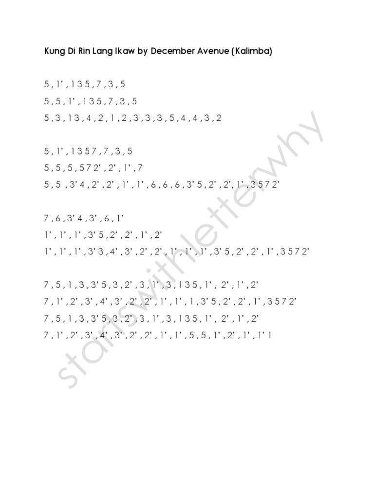 Kung Di Rin Lang Ikaw By December Avenue Kalimba Pdf